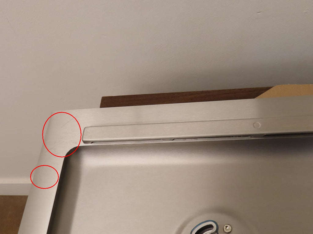 1-SCUFFS ON THE TOP OF THE STAINLESS TRIM AROUND THE COOKTOP.